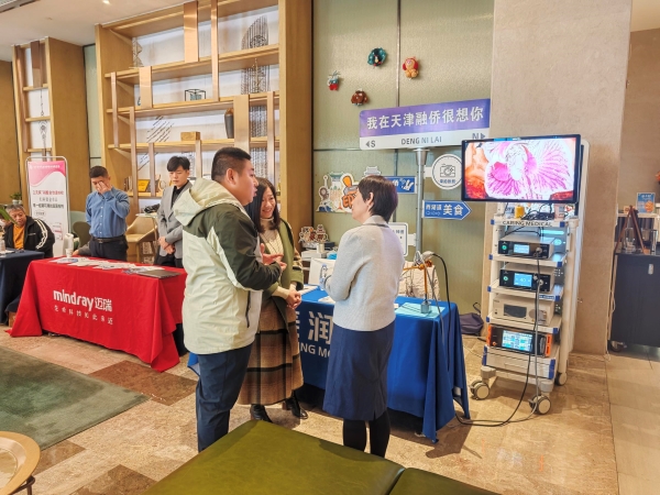 本次大会及学术活动由天津市互联网医学科普协会主办,天津市互联网医学科普协会妇科专委会承办,学术活动内容包括更年期多学科管理及宫腔镜“手拉手”实训学习班。天津市中心妇产科医院朱颖军主任会场参观产品、与展商交流,并给学员们讲解电切镜操作要领及注意事项。